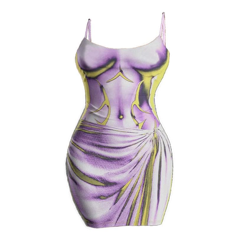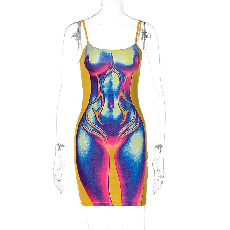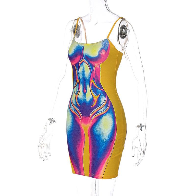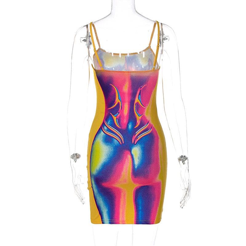 Contrast body print backless cami mini dress